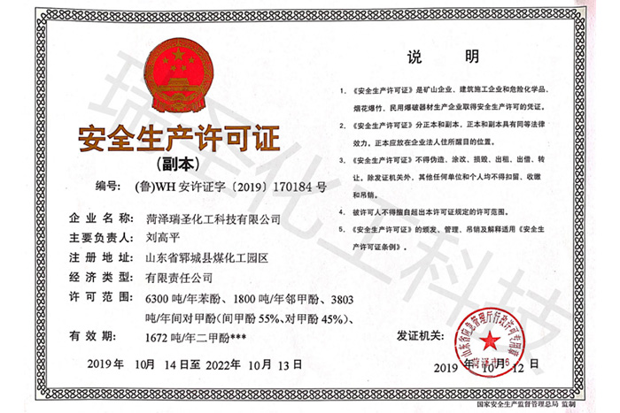 瑞圣化工資質證書展示